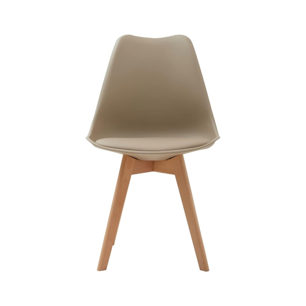 Set di 4 sedie in polipropilene tortora, gambe in legno, 47x52x82 cm