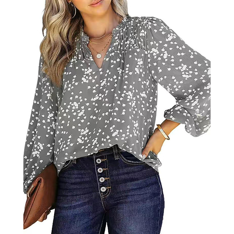 Women's Blouse Graphic Polka Dot Elegant Stylish Modern 3/4 Length Sleeve Ruffle Sleeve V Neck Regular Tops Work Daily Holiday Ruched Buttons Red Blue Green Gray Summer Spring Fall