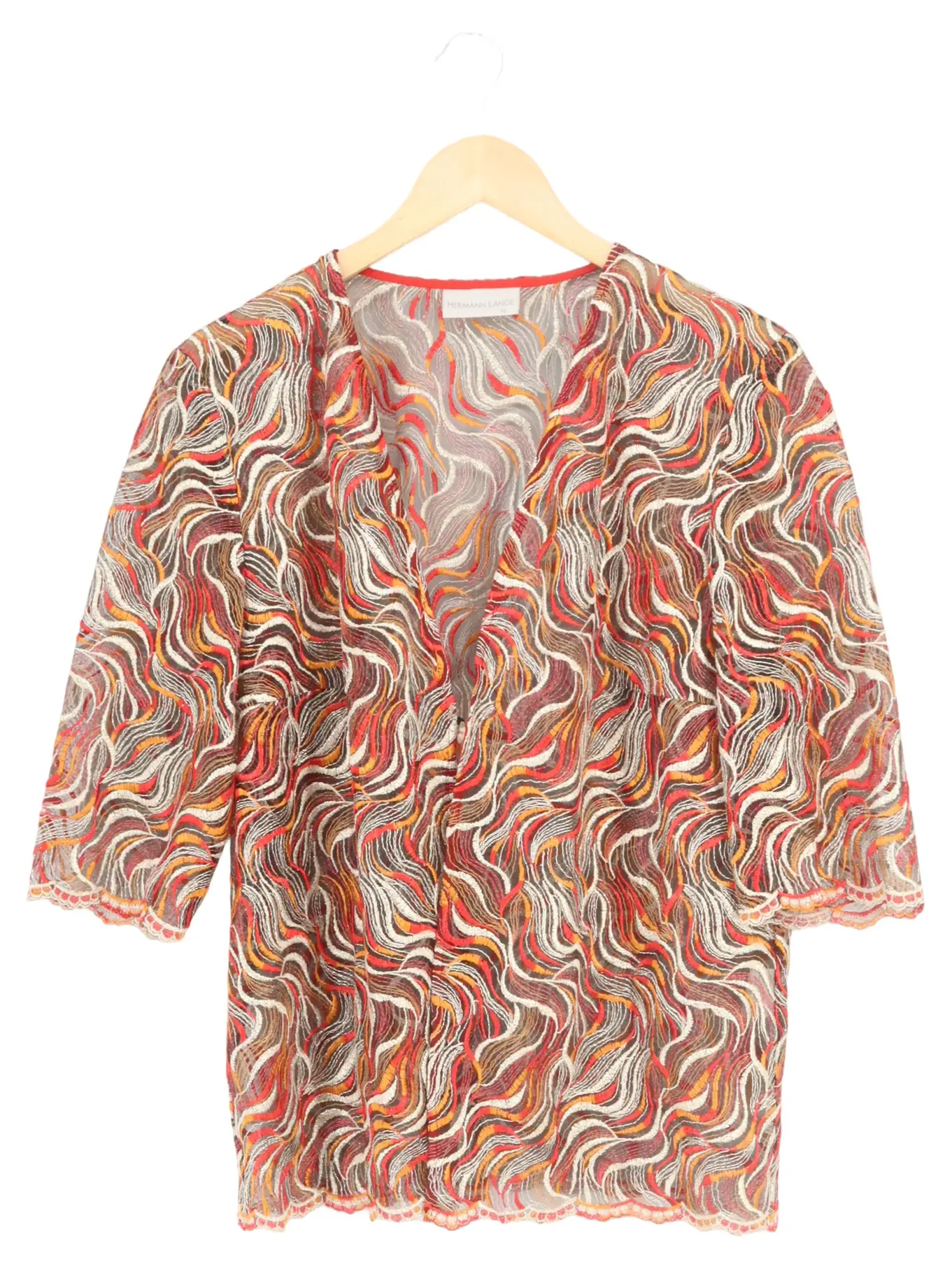 HERMANN LANGE Damen Bluse Gr. 42 Wellenmuster Bunt Freizeit