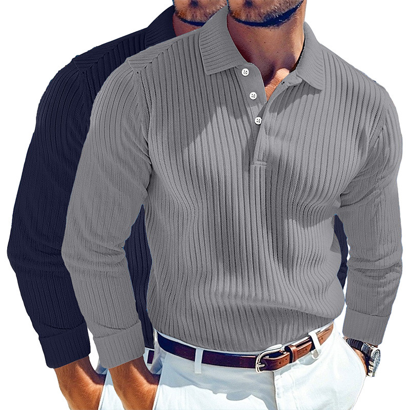 Men's Rib Knit Top Textured Street Casual Lapel Long Sleeve Basic Modern Plain 2 Piece Buttons Spring Fall All Seasons Regular Fit Gray / Navy Gray / White Blue White Blue Gray Blue Navy White
