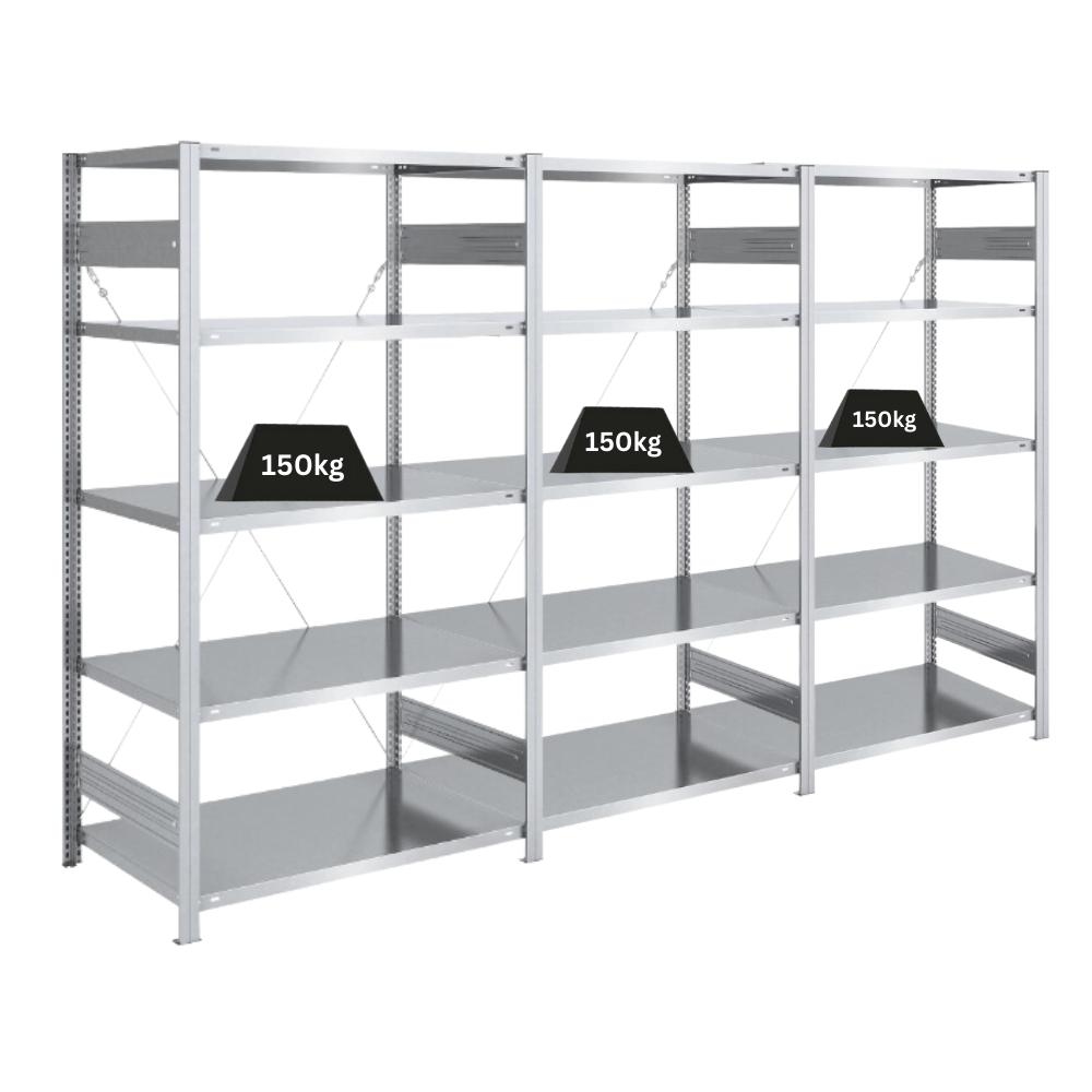 PROREGAL Schwerlastregal Silver Mamba Made in Germany | HxBxT 200x300x60cm | 5 Ebenen je 150kg Fachlast | Verzinkt