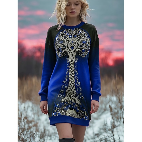 Abito Mini Donna Manica Lunga Girocollo Abito Casuale Abito T-Shirt Abito Tee Abito A-Line Abito Casuale Fit Regolare Grafico Geometrico Astratto Blu Viola Verde Grigio Autunno Inverno