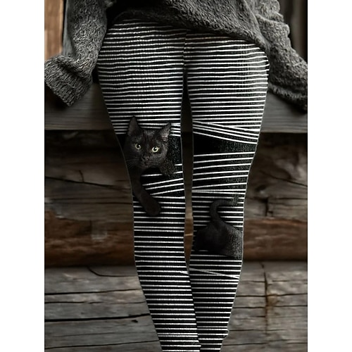 Leggings da donna Vacanza Moda Vintage Lunghezza Totale Alta Vita Grafica Gatto Stampa Astratta Termica Calda Morbidi Traspiranti Elasticizzati Formali Esterno Vacanza Nero e Bianco Nero Grigio Scuro