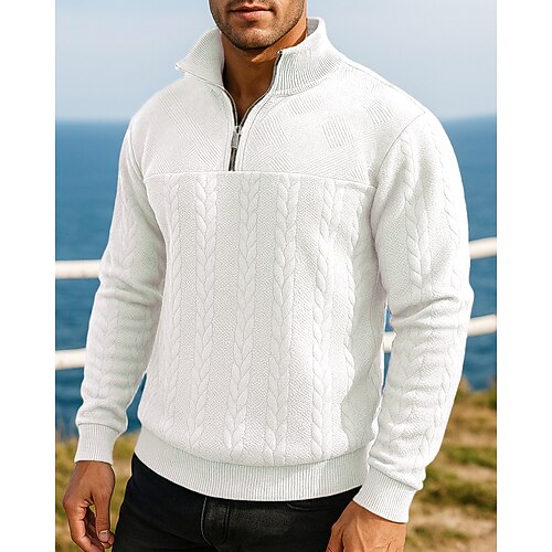 Per uomo Top con cerniera Felpa pullover Jacquard Molto spesso Manica Lunga Top Athleisure Tinta unita Spandex Escursionismo Viaggio Vacanze abbigliamento sportivo Abbigliamento sportivo Nero Bianco