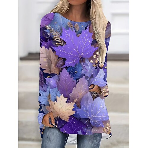 Per donna Maglietta Grafico Piante Vintage Elegante Classico Manica Lunga Girocollo Top Regolari Quotidiano Stampato Nero Viola Fucsia Marrone Primavera Autunno