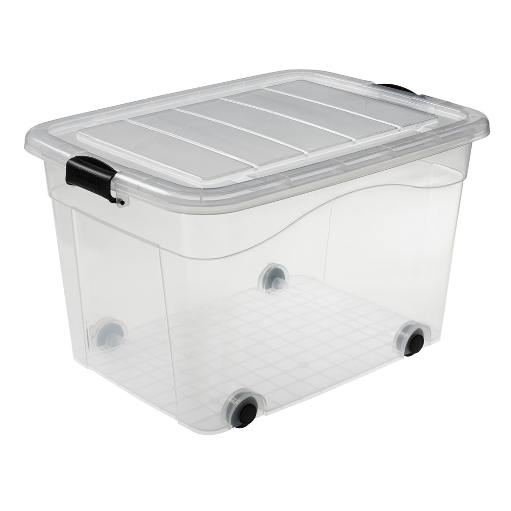 Aufbewahrungsbox transparent 100 Liter mit Deckel und Klickverschluss 690 x 515 x 420 mm inkl. Rollen