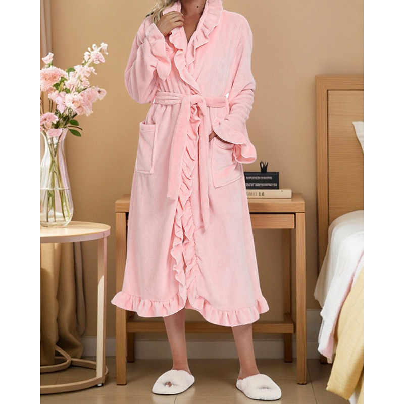 Women's Robe Casual Pure Color Pocket Home Daily Bed Long Sleeve Shirt Collar Black White Pink Red Purple Fall Winter Loose Fit