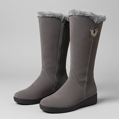 stivali invernali da donna in pelle scamosciata fino al ginocchio: foderati in pelliccia sintetica calda, chiusura con cerniera, tacco spesso, eleganti calzature da esterno per il tempo nevoso