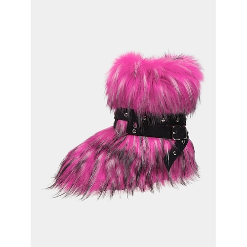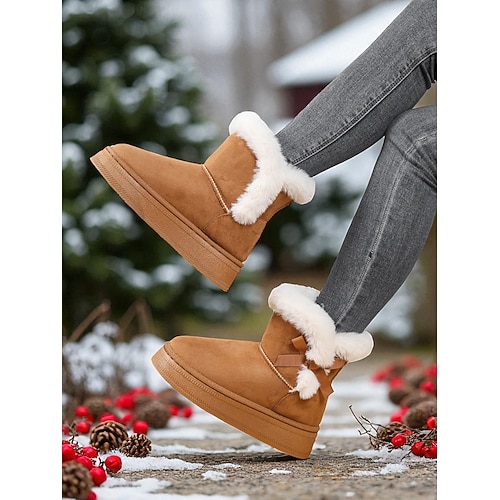 stivali da neve in pelliccia sintetica da donna, caldi stivaletti invernali per interni abbigliamento outdoor, comode scarpe di peluche per Natale, gite sugli sci tempo freddo
