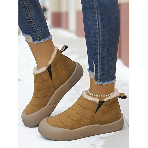 stivali invernali da donna con rifiniture in pelliccia sintetica color cuoio e suola antiscivolo: comodi, resistenti, perfetti per passeggiate invernali, neve e attività all'aperto informali
