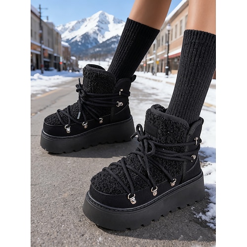 stivali da neve con plateau in pelliccia sintetica da donna: eleganti stivali marroni con lacci e fodera calda, perfetti per escursioni invernali, attività all'aperto e uso quotidiano
