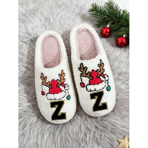 comode pantofole natalizie da donna con design a renna: morbide pantofole con 26 lettere tra cui scegliere, a tema natalizio, perfette per rilassarsi e come regalo