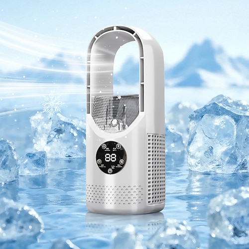 Tischventilator ohne Rotorblätter mit Sprühfunktion, kleiner, leiser USB-Tischventilator (30 cm) mit 6 Geschwindigkeitsstufen, Timer, LED-Licht und Luftbefeuchter für Büro, Zuhause und draußen