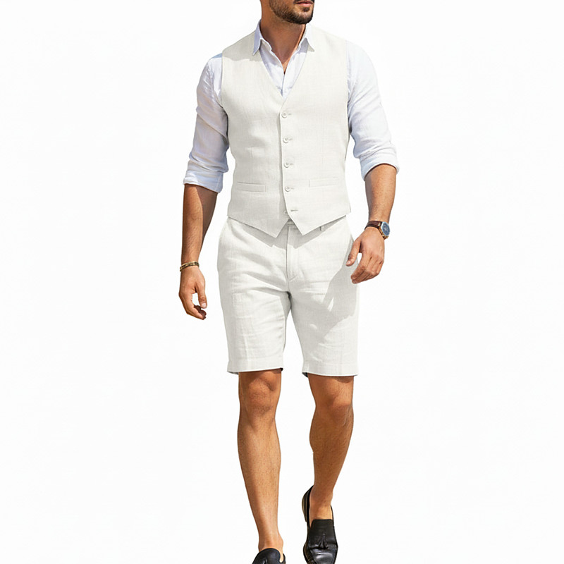 Men's Linen Waistcoat Suits Wedding Shorts Vest Summer Solid Formal Light Blue Sky Blue Dark Navy Colored Causal 2 Piece Tailored Fit