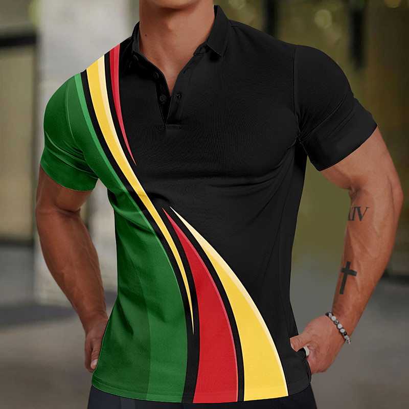 Men's Geometic Line Polo Short Sleeve Polo Shirts Collared Shirts Casual School Outdoor Daily Wear Home Wear 3D Print Summer White Blue Green