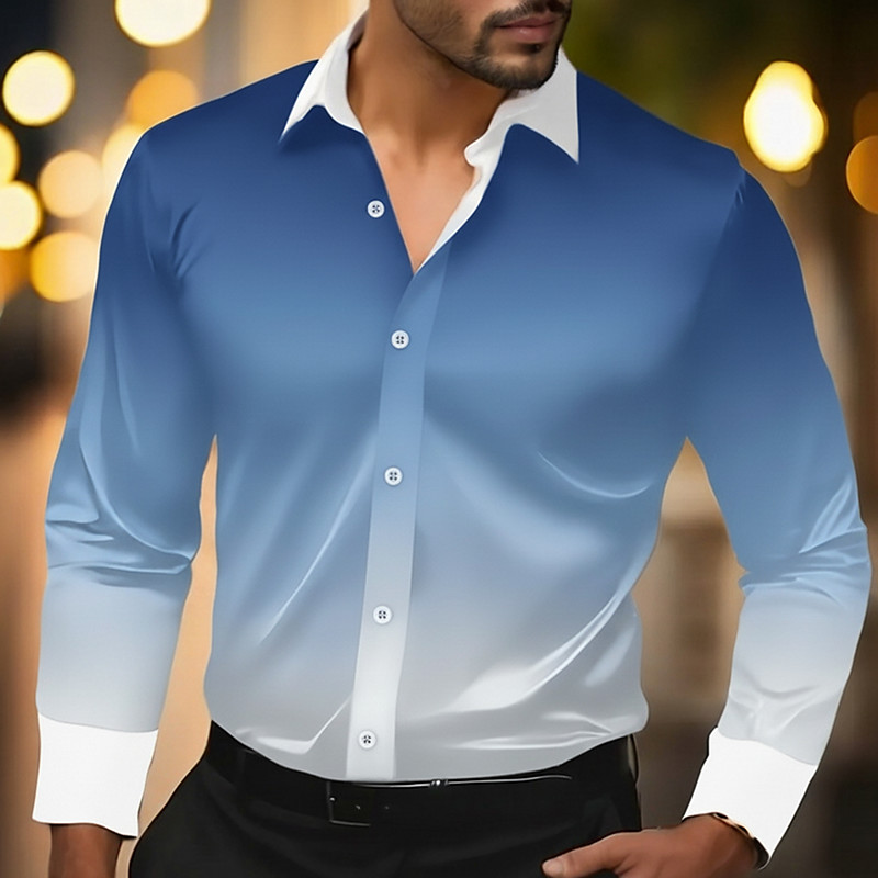 Men's Gradient Color Shirt Satin Shirt Dress Shirt Long Sleeve Vintage Retro Vacation Dailywear Summer Spring Fall Turndown 3D Print Button Up Shirts Blue Purple Gold Green Gray