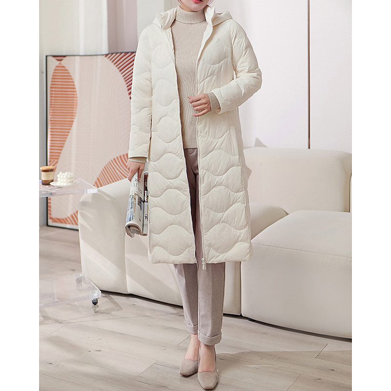 Women's Down Jacket Coat Warm Comfortable Zipper Pocket Casual Plain Outdoor Vacation Holiday Going out Zipper Long Hooded Regular Fit Long Sleeve Outerwear Light Blue White Purple Fall Winter