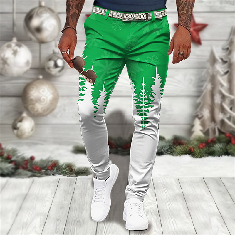 Christmas Men's Christmas tree Printed Pants Business Casual 3D Print Dress Trousers Outdoor Daily Wear Streetwear Polyester Wine Blue Orange S M L Medium Waist Elasticity Pants