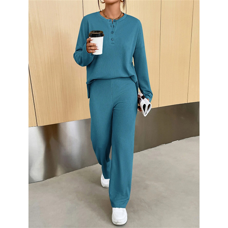 Women's Fashion Streetwear Daily Sweatshirt Sweatpants Long Sleeve Crew Neck Plain Casual Daily Navy Blue Blue Khaki Fall Regular Fit