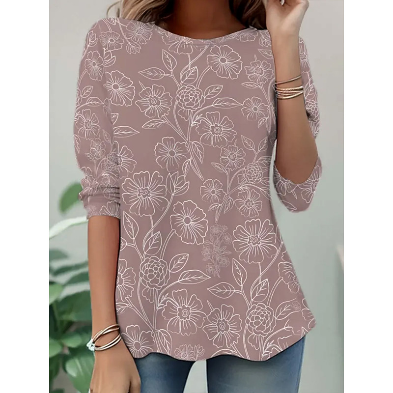 Women's T Shirt Floral Graphic Plants Vintage Stylish Classic Long Sleeve Crew Neck Round Neck Regular Tops Daily Print Dusty Rose Spring Fall Winter