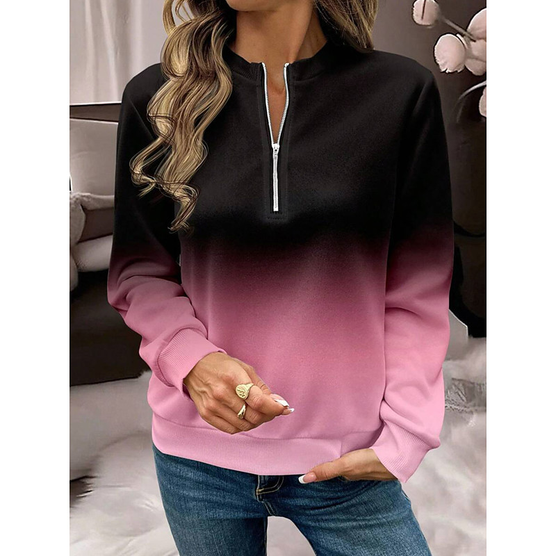 Women's Pullover Sweatshirt Zip Up Sweatshirts Graphic Color Block Fashion Casual Long Sleeve Crew Neck Regular Tops Street Dailywear Zipper Print Pink Fall Winter