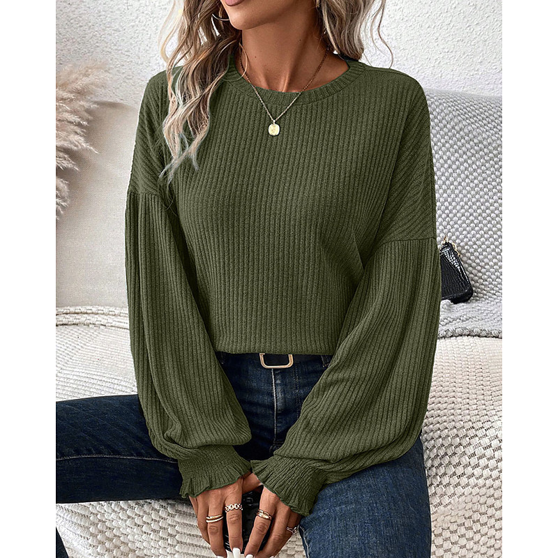 Women's Blouse Plain Fashion Casual Long Sleeve Crew Neck Regular Tops Daily Going out Weekend Patchwork Army Green Light Brown Green off-white Fall