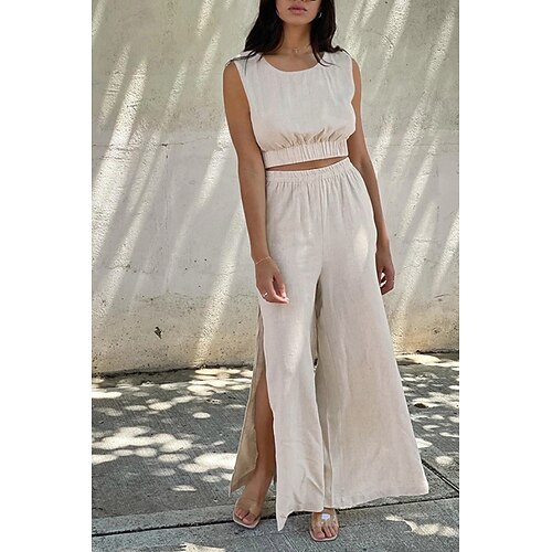 Per donna Attivo Essenziale Set di biancheria in cotone Set da due pezzi Blusa Senza Maniche Girocollo Tinta unica Spacco sulla Coscia All'aperto Casuale Cachi Estate Vestibilità regolare
