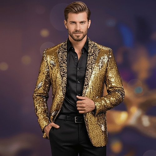Disco Blazer 1980s 2 Colors Shiny Sequin Tuxedo Slim Fit Lapel Collar Suits Carnival Costume Men's Adults' Halloween Carnival Wedding Party Club Tuxedo