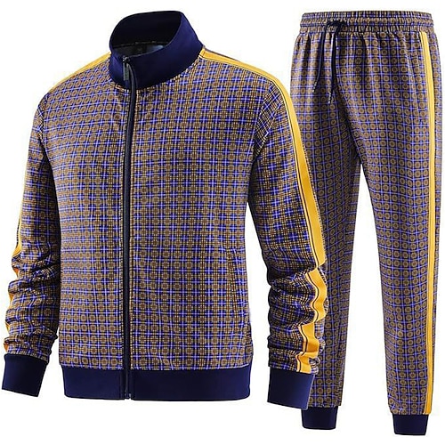 Per uomo A righe Geometrico 2 pezzi Set di felpe 3D Tuta Felpe con cerniera Manica Lunga Pantaloni lunghi Collo alla coreana Casual All'aperto Vacanza Casuale Con stampe Con zip Primavera Autunno Blu