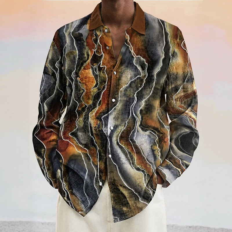 Men's Geometric Marble Abstract Art Shirt Button Up Shirt Long Sleeve Fashion Casual Vacation Daily Spring Fall Turndown 3D Print Linen Like Shirt Brown Gray
