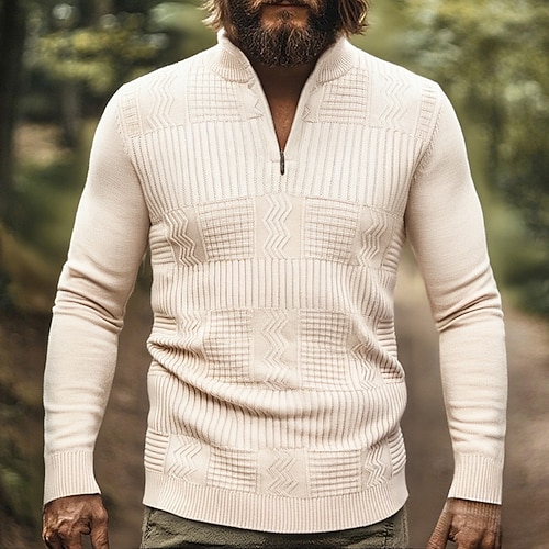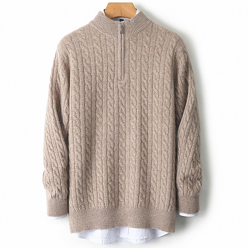 Per uomo Maglioni di Natale Maglione Treccia Maglia Top Regolari Lavorato a maglia Zip a un quarto Semplice Collo alla coreana Moderno Contemporaneo Casual Maglione di Natale Lavoro Abbigliamento
