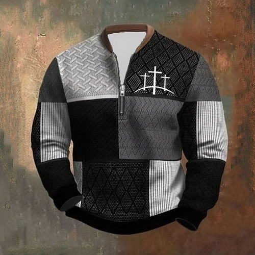 Per uomo Blocco di colori Croce Felpa con cerniera a un quarto Felpe Manica Lunga Felpa Collo con zip Vintage Retrò Stampa Ferie Uscire Stampato Autunno Inverno