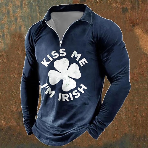 San Patrizio Per uomo Giorno di San Patrizio Polo Polo con zip Manica Lunga Magliette polo Collo ripiegato Con cerniera Casual All'aperto Abbigliamento casual alla moda Giorno di San Patrizio Casual