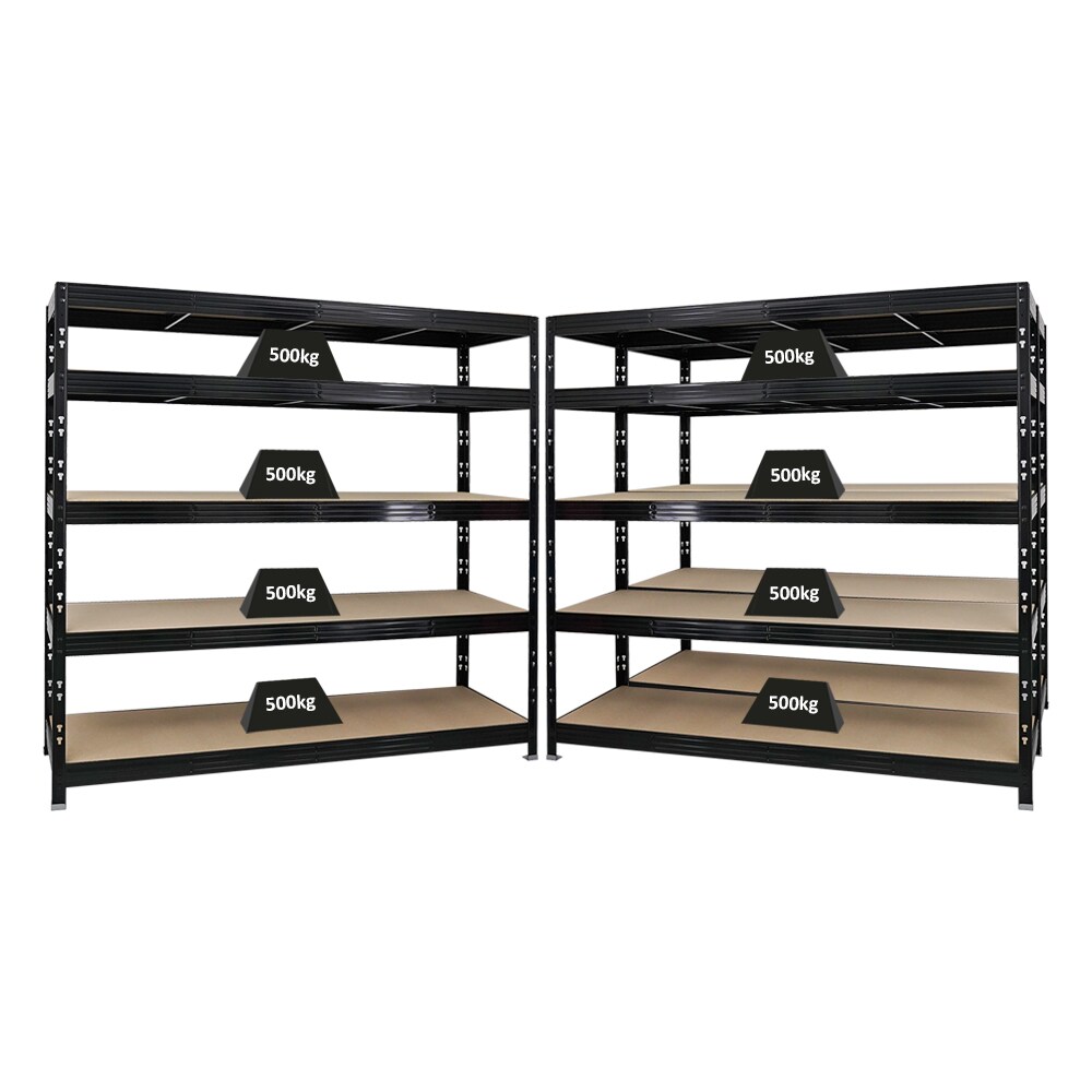 PROREGAL Mega Deal 3x Profi Schwerlastregal Rhino | HxBxT 180x200x60cm | 5 Spanplatten-Ebenen 8mm | Fachlast 500kg | Schwarz