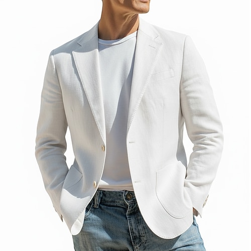 Per uomo Blazer di Lino Colletto ad incastro Moda Classico Casual Tinta unita Blazer in lino Nero Bianco Rosa Vestibilità su misura Monopetto Due Bottoni