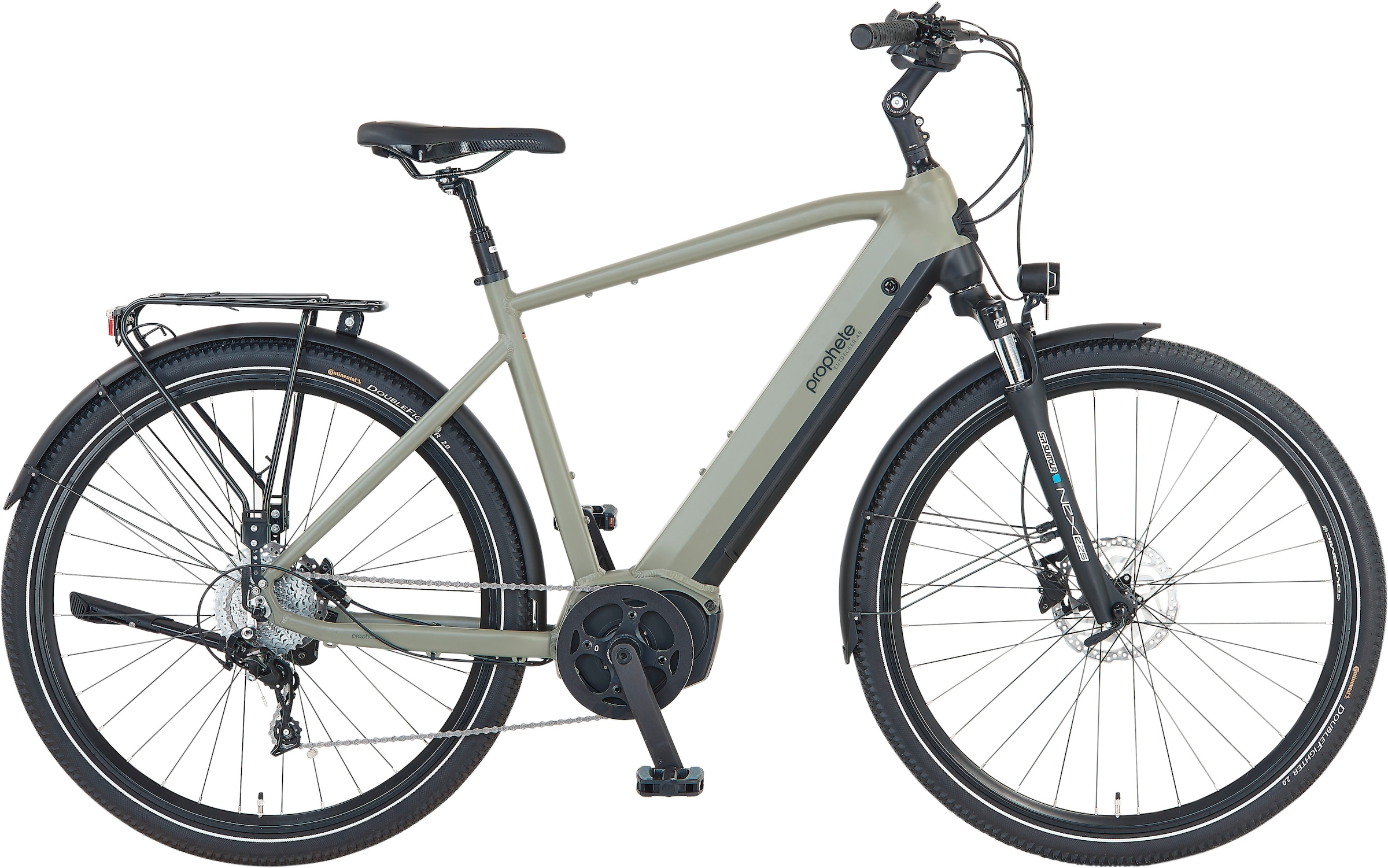 E-Bike PROPHETE "Entdecker 4.0" Gr. 54, grau (moosgrau matt, schwarz), Elektrofahrräder, 54cm, 28 Zoll (71,12cm), Pedelec, Elektrofahrrad für Herren, Topseller