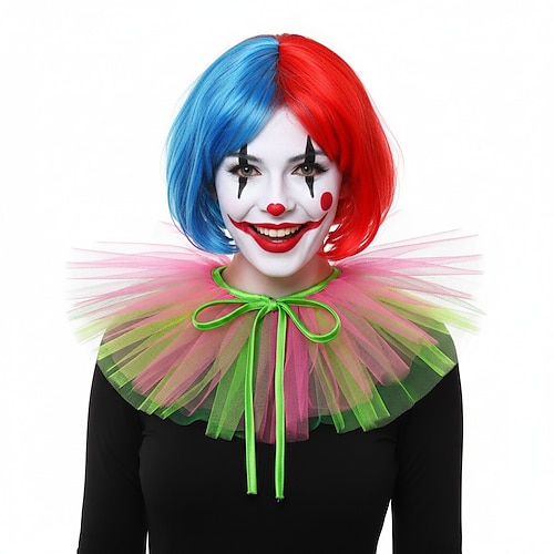 Costume di Carnevale 2026 Clown Giullare Carnevale Colletto a balze Balza in tulle Circo Costume Cosplay Adulti Per donna Halloween Feste Performance Costume di Carnevale facile Vestirsi