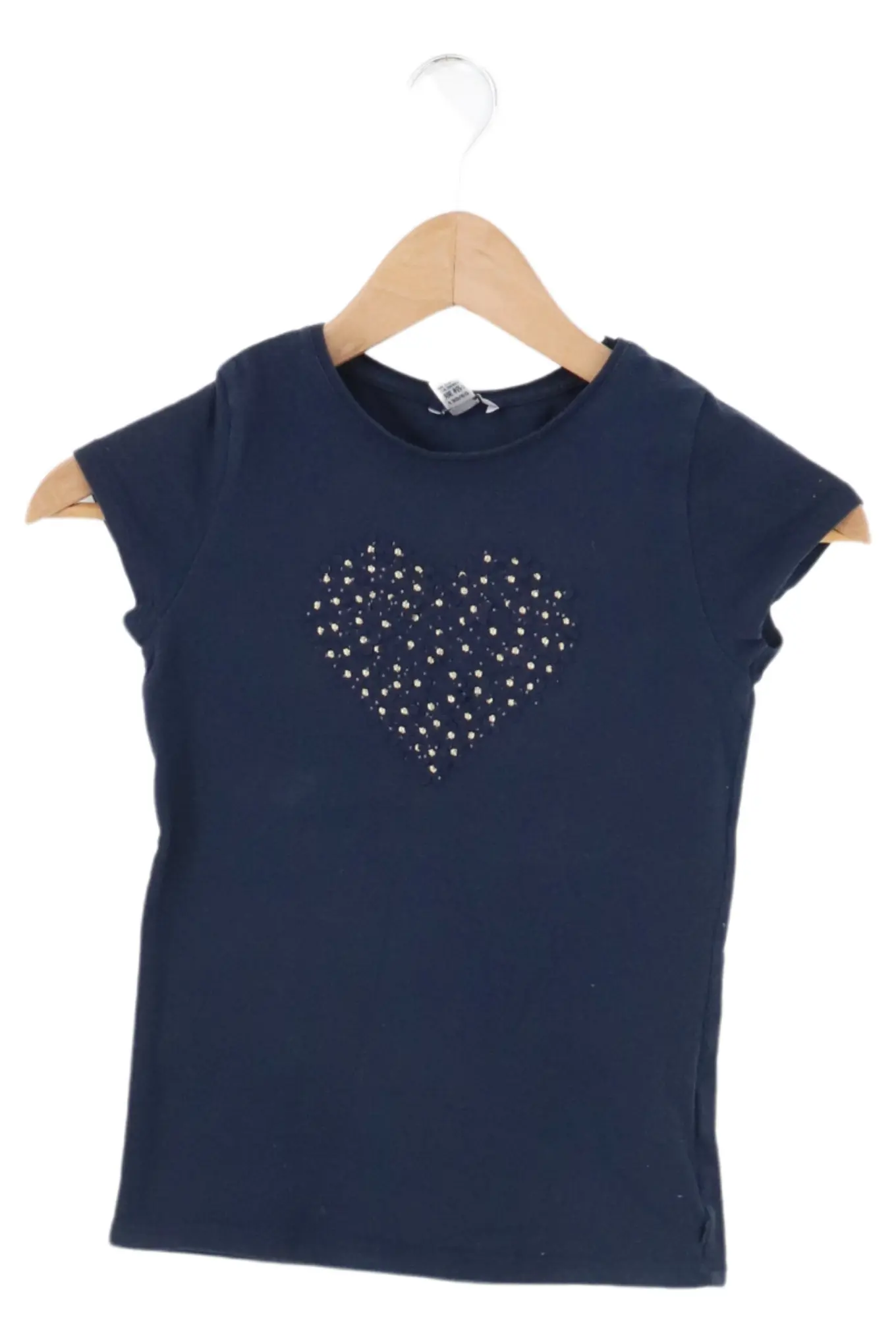 OKAÏDI T-Shirt Kinder 5XL Blau Herz Glitzer Baumwolle