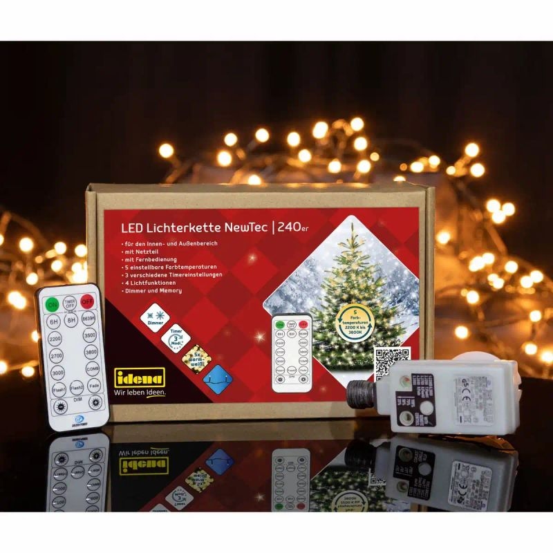 Idena Lichterkette 240 LED warmweiß 5 Farbtemperaturen 31,9m, innen & außen, Timerfunktion
