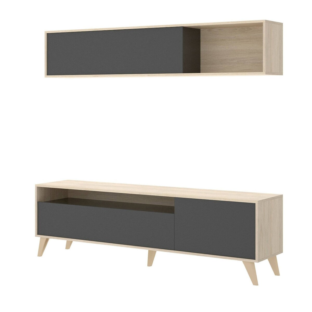 Dmora TV-Ständer Tambo, TV-Ständer-Wohnzimmerset, Mehrzweck-Wohnzimmermöbel, 180x41h180 cm, Anthrazit und Nodi-Eiche