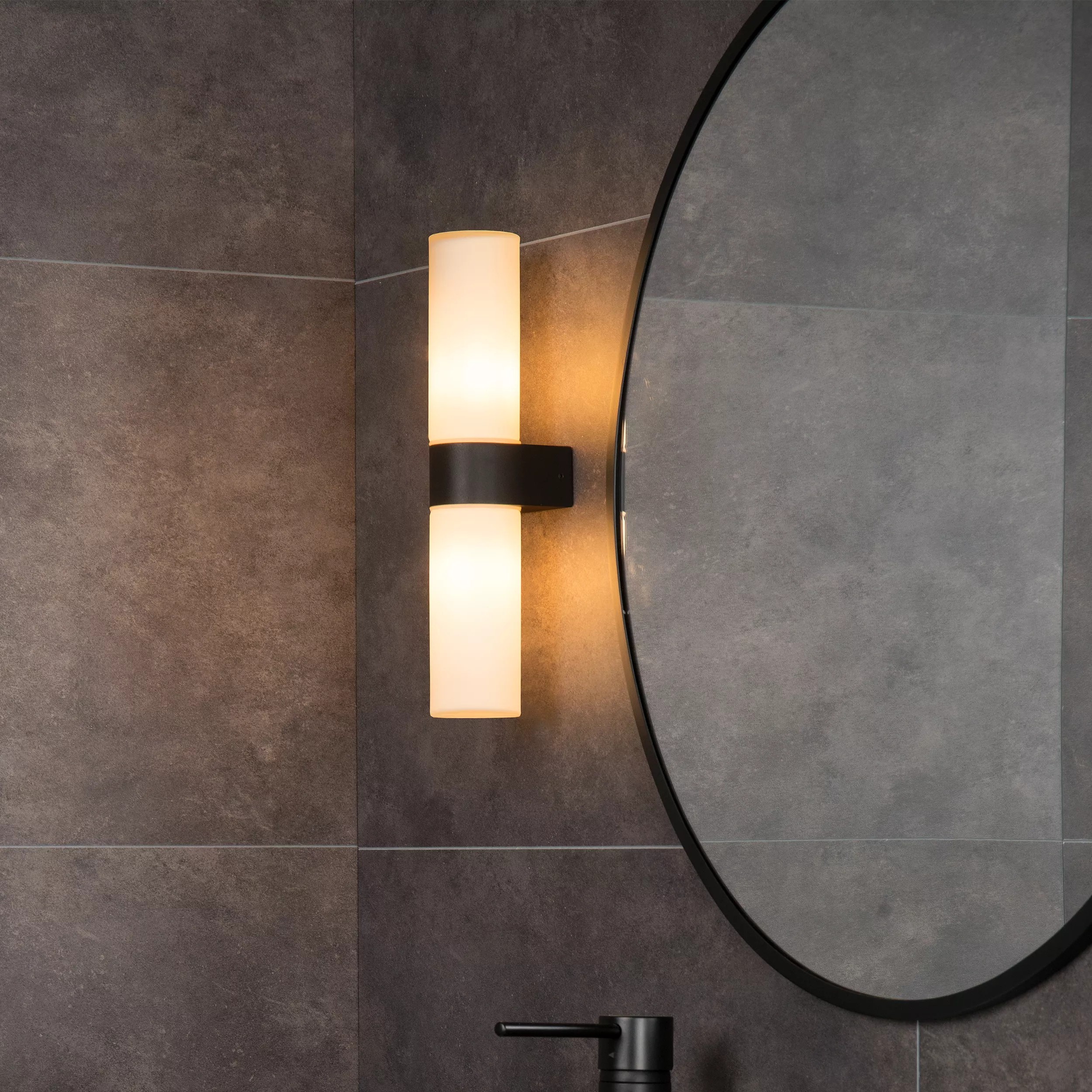 Lucide Jesse - wandverlichting - 5,5 x 8 x 29 cm - IP44 - zwart en opaal