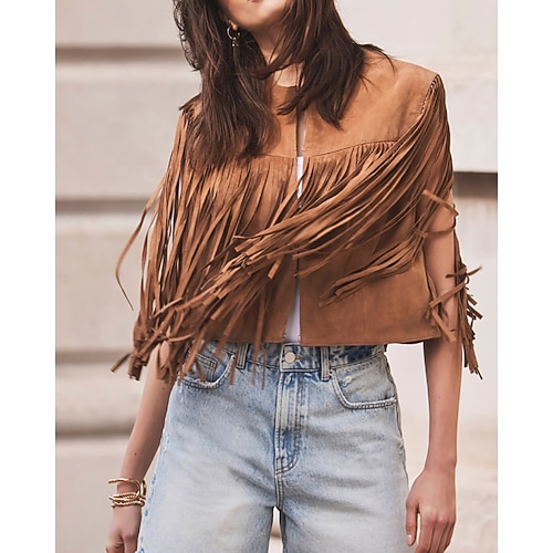 Per donna Quotidiano Bolero Top Manica Lunga Scollo a V Nero Cammello Cachi Autunno Vestibilità regolare