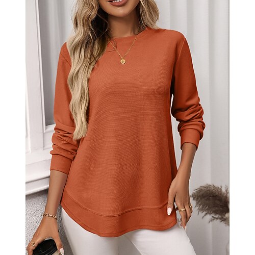 Per donna Blusa Tinta unica Elegante Casual Manica Lunga Girocollo Top Regolari Quotidiano Nero Rosso Blu Verde Cachi Primavera Autunno Inverno