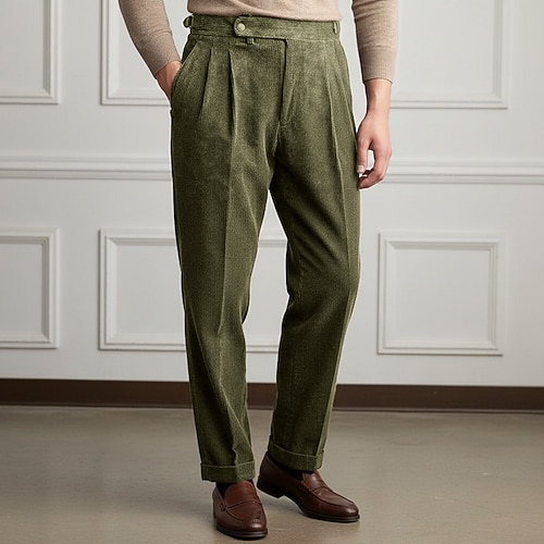 Per uomo Pantaloni Pantaloni Eleganti Pantaloni in velluto a coste Pantaloni plissettati Pantaloni Gurkha Tasca Semplice Comodità Morbido Lunghezza intera Feste Affari Quotidiano Moda Streetwear Nero