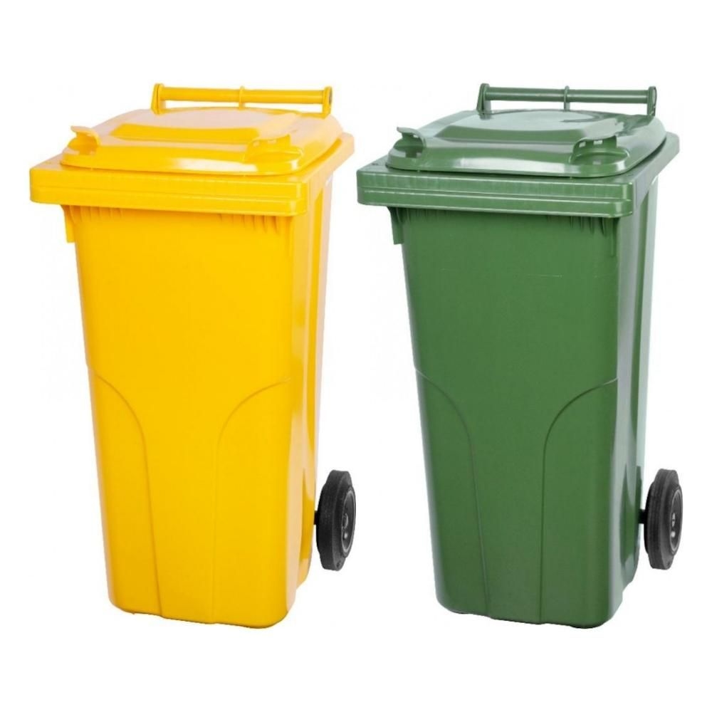 Mega Deal 2x PROREGAL 2-Rad-Mülltonne, 120 Liter, HDPE Kunststoff, Gelb & Grün, Mülltonne, Müllgroßbehälter, Mülleimer, Abfalltonne, Müllbehälter