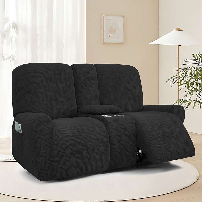 Recliner Chair Cover with Cup Holders - 5x5 Grid Stitch Design, Modern Lounge Chair with Low Back for Living Room or Home Theater