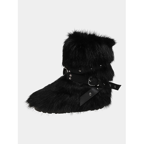 stivali invernali da donna in pelliccia sintetica con dettaglio cintura - comodi elegante design ispirato ai vichinghi nordici, perfetto per le meraviglie invernali, il Natale e le avventure all'aria