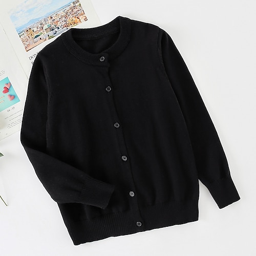 Bambini Unisex Felpa Tinta unica Manica Lunga Bottoni All'aperto Moda Nero Autunno Vestiti 4-12 Anni