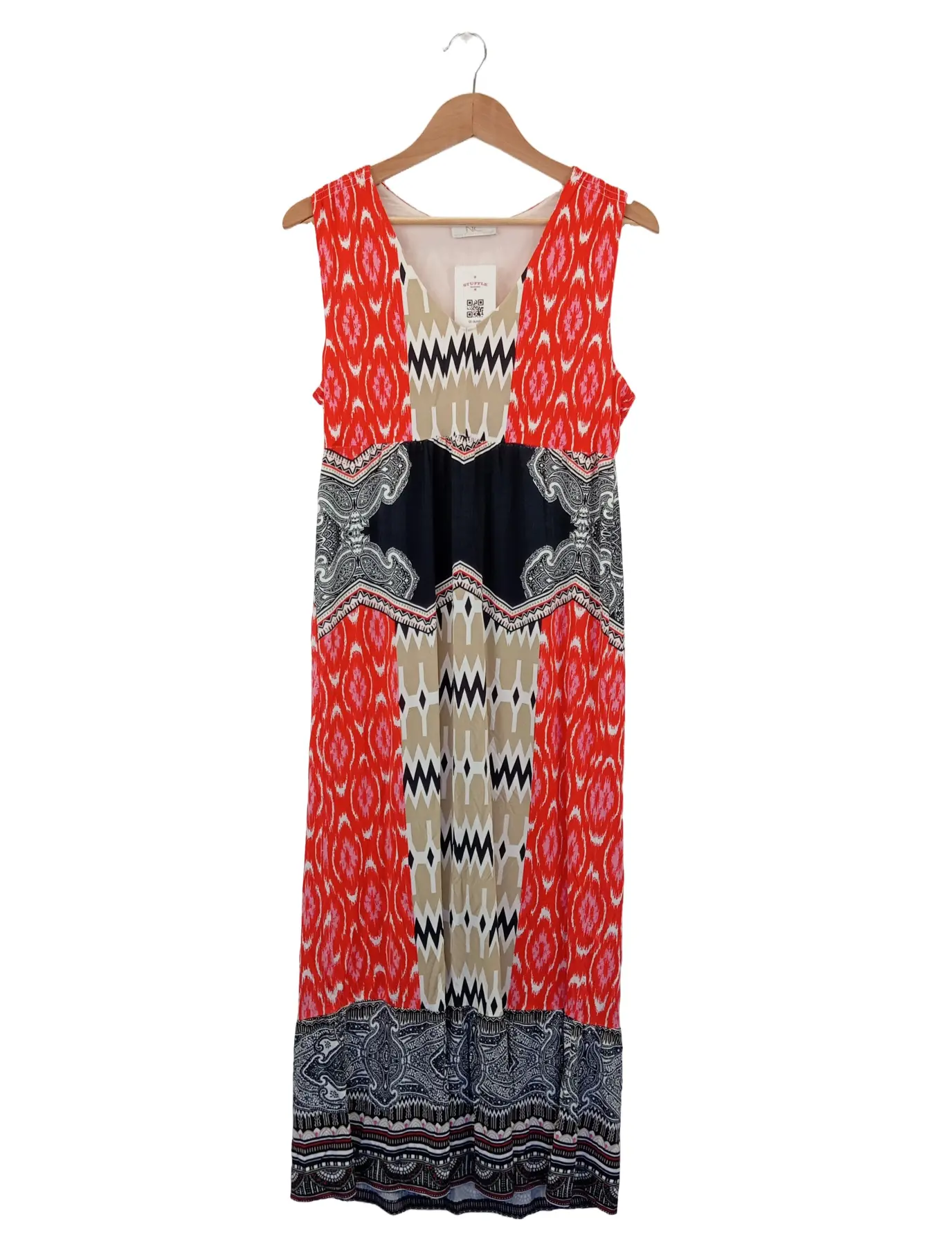 NICE CONNECTION Damen Trägerkleid Rot Schwarz Muster Gr. 40