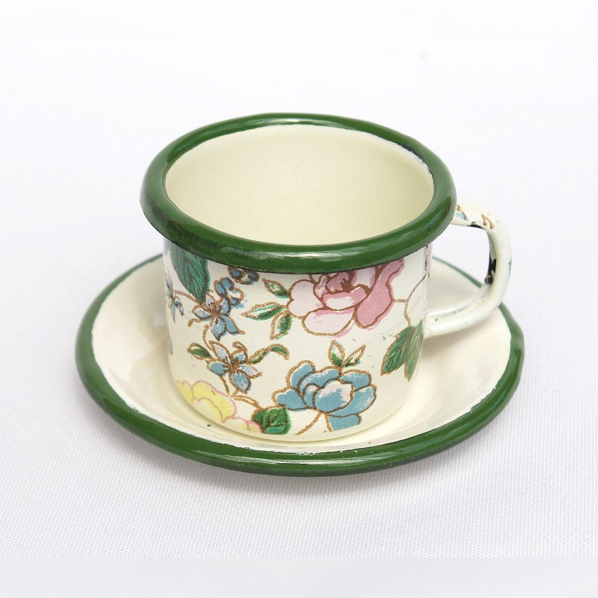 DanDiBo Emaille Tasse mit Untertasse BsB 11/61 Volldekor emailliert 5 cm Kaffeebecher